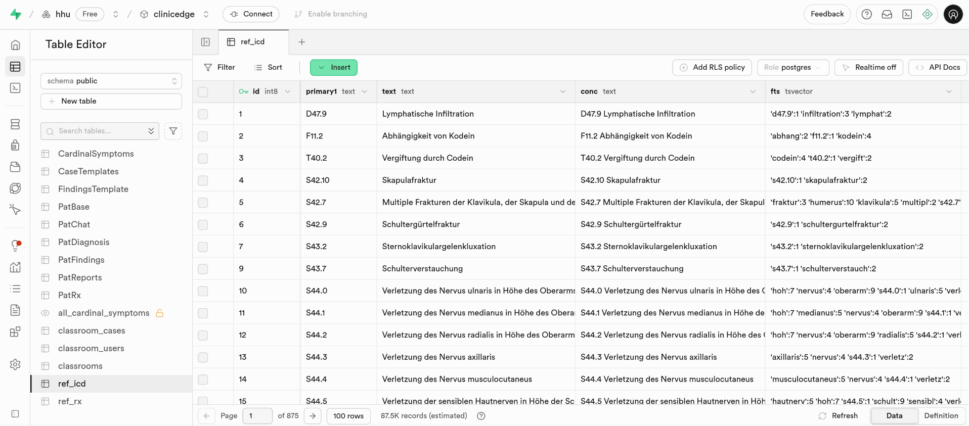table in supabase stores the ICD-10 diagnosis codes and is referenced when a user assigns a diagnosis to a patient case.
